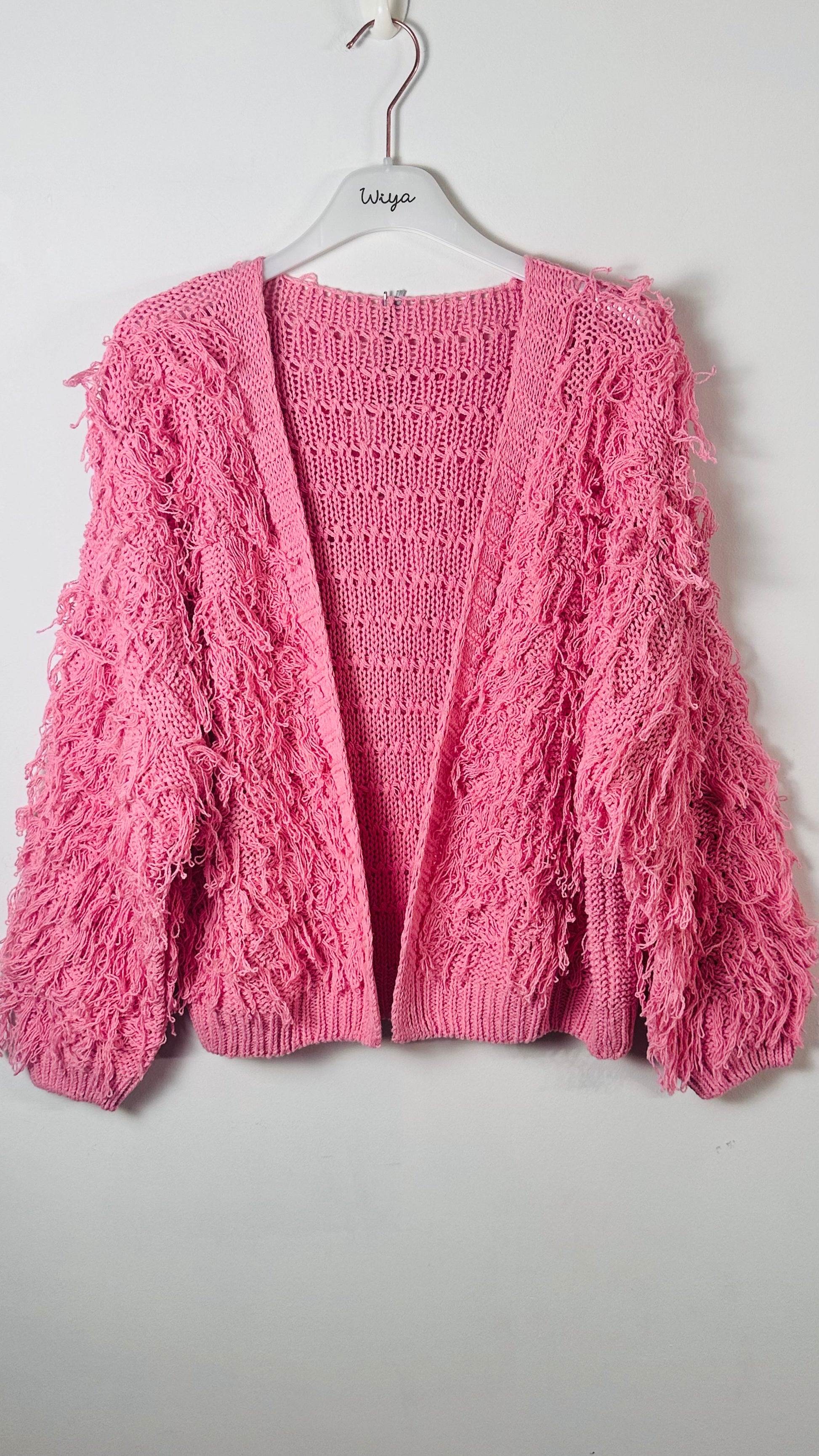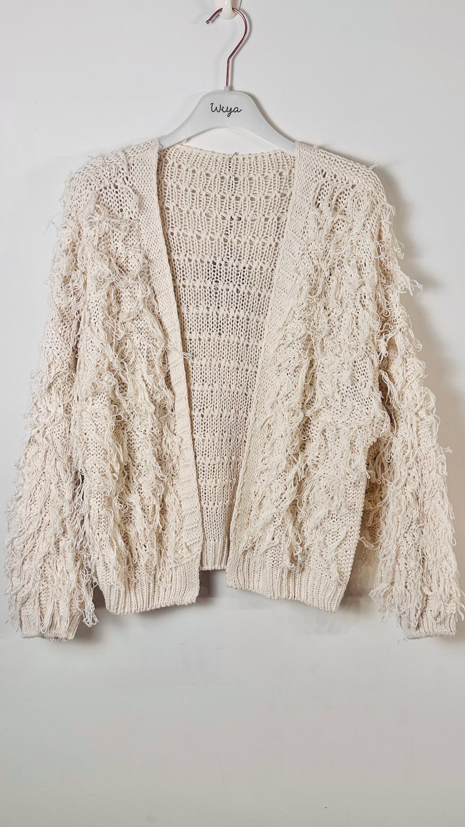 Chaqueta corta , abierta, de hilo deshilachado, manga larga. sin botones talla única