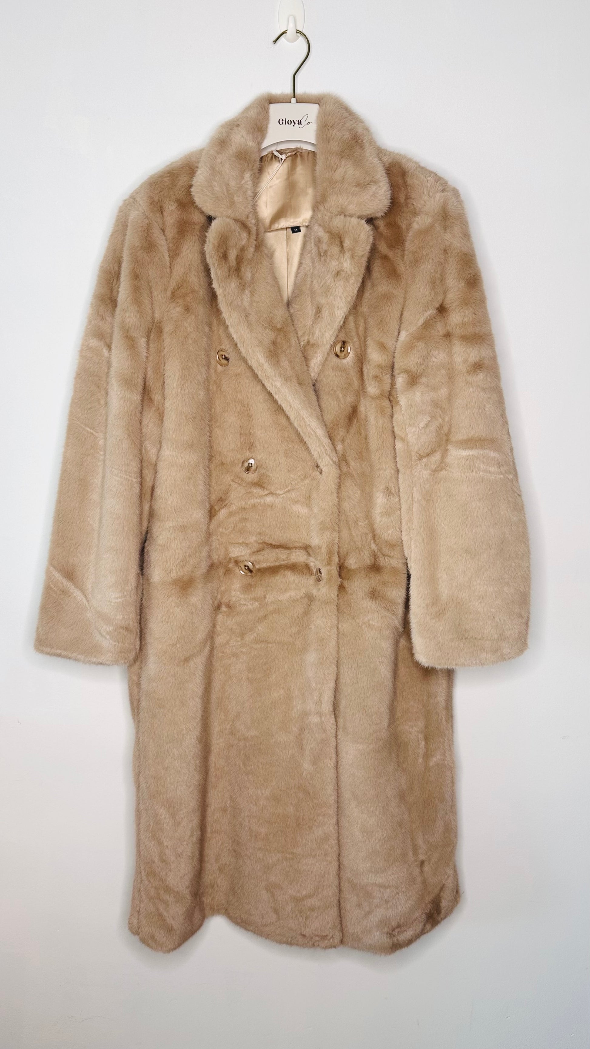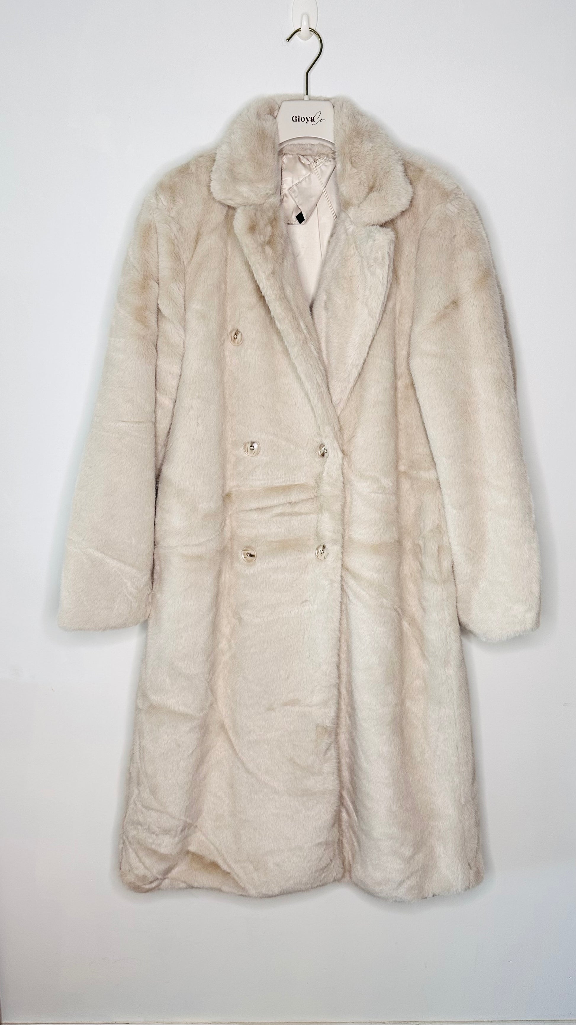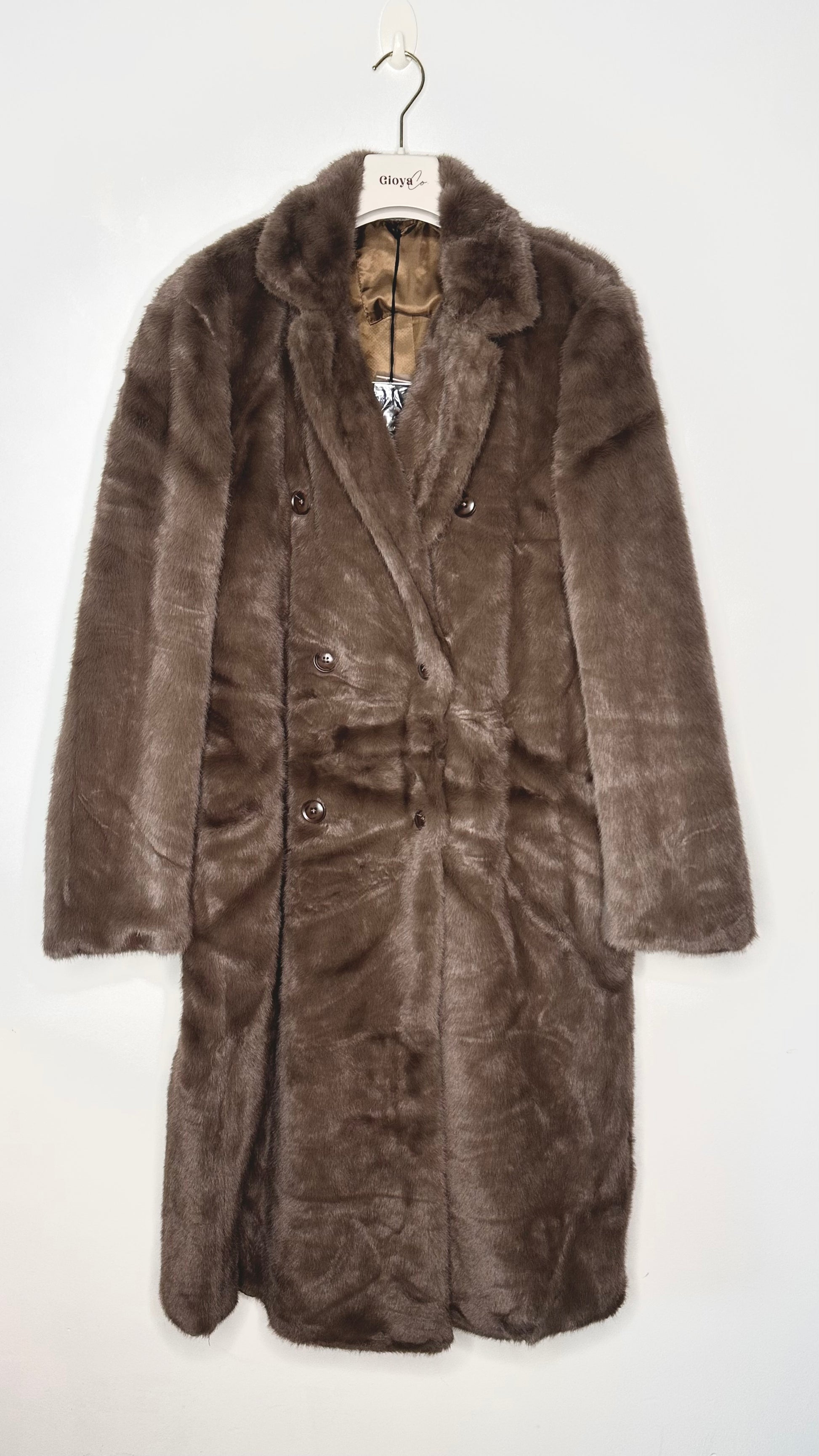 Abrigo de pelo cruzado con doble abotonadura, con bolsillos y forro interior.