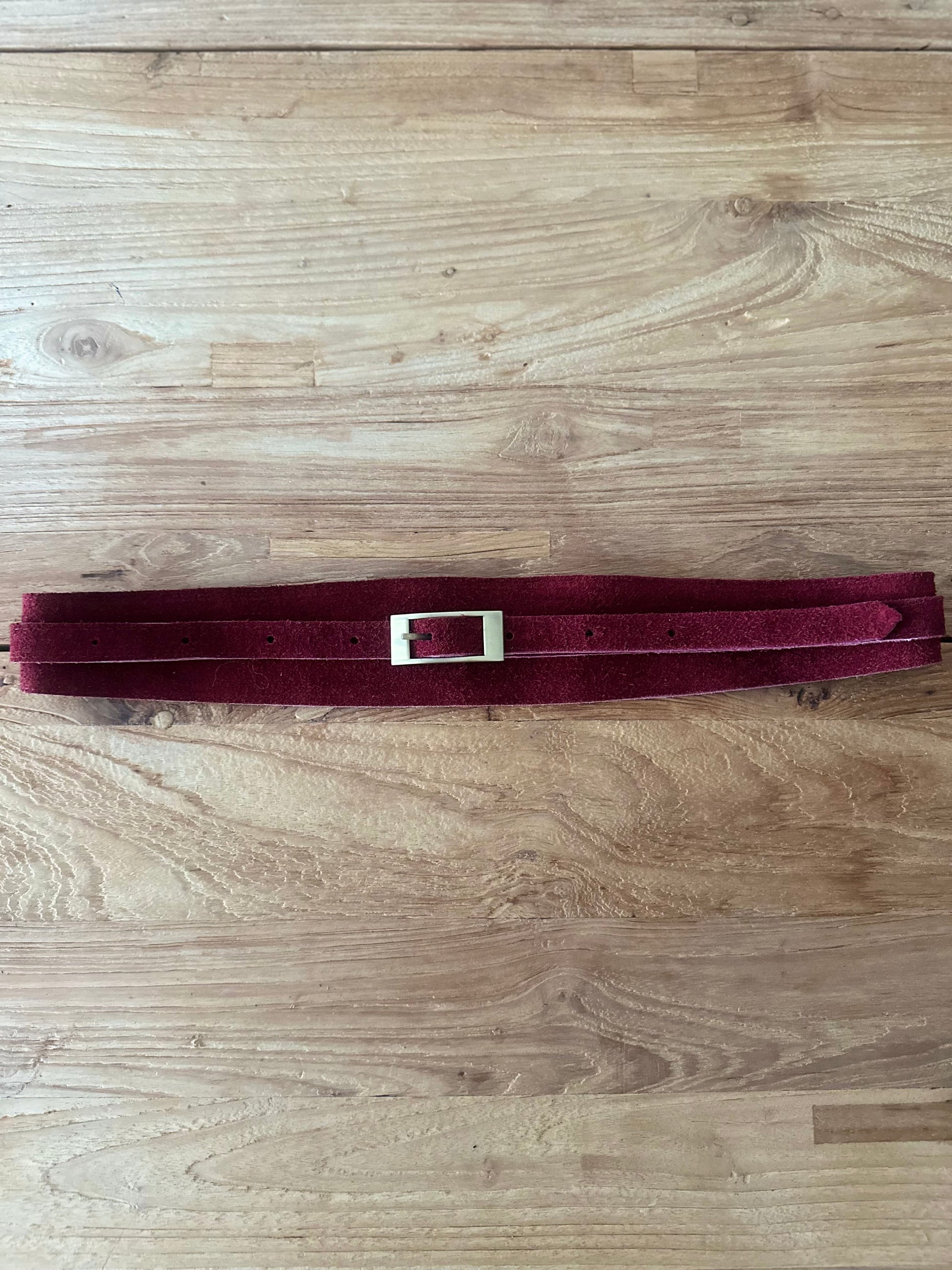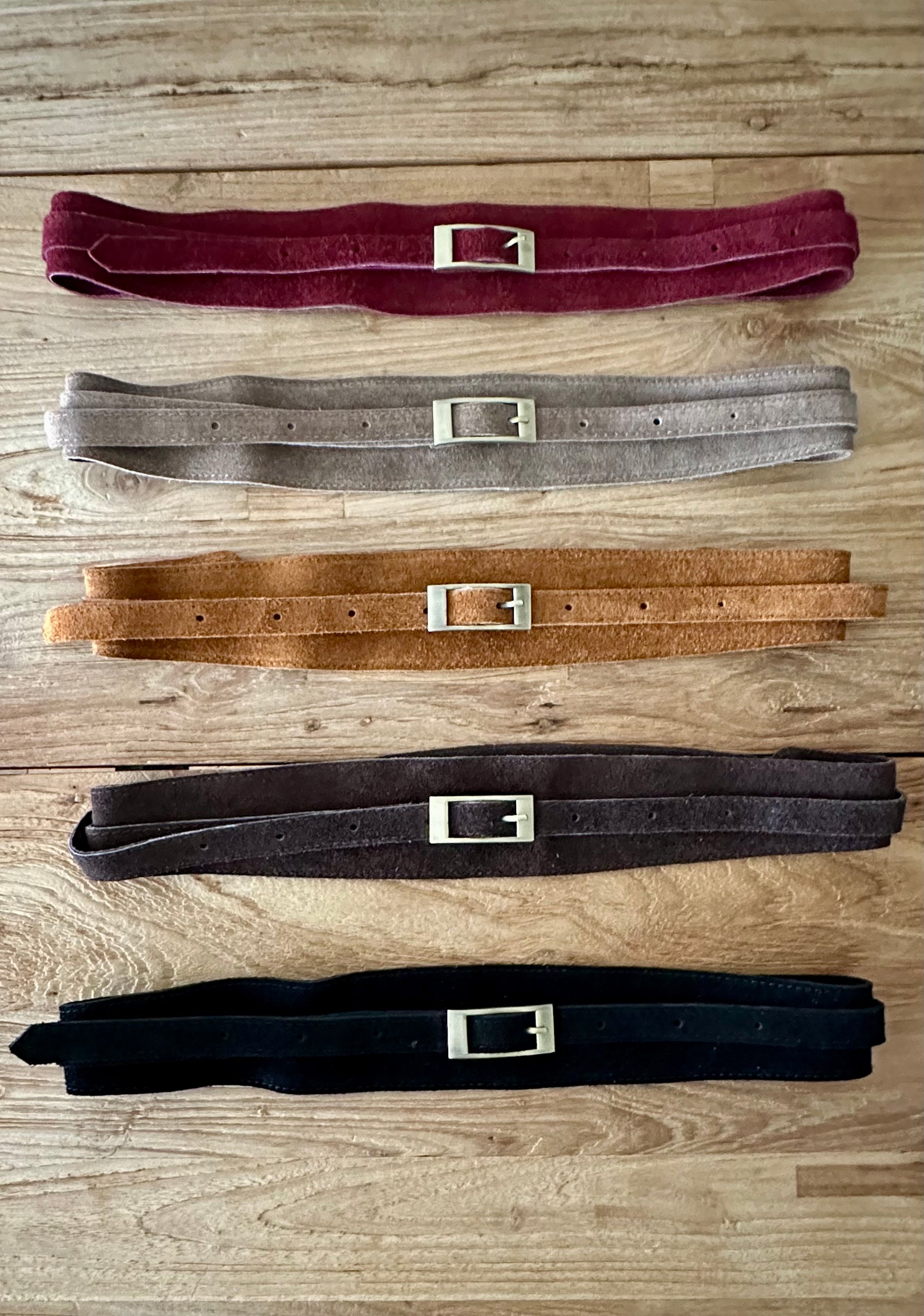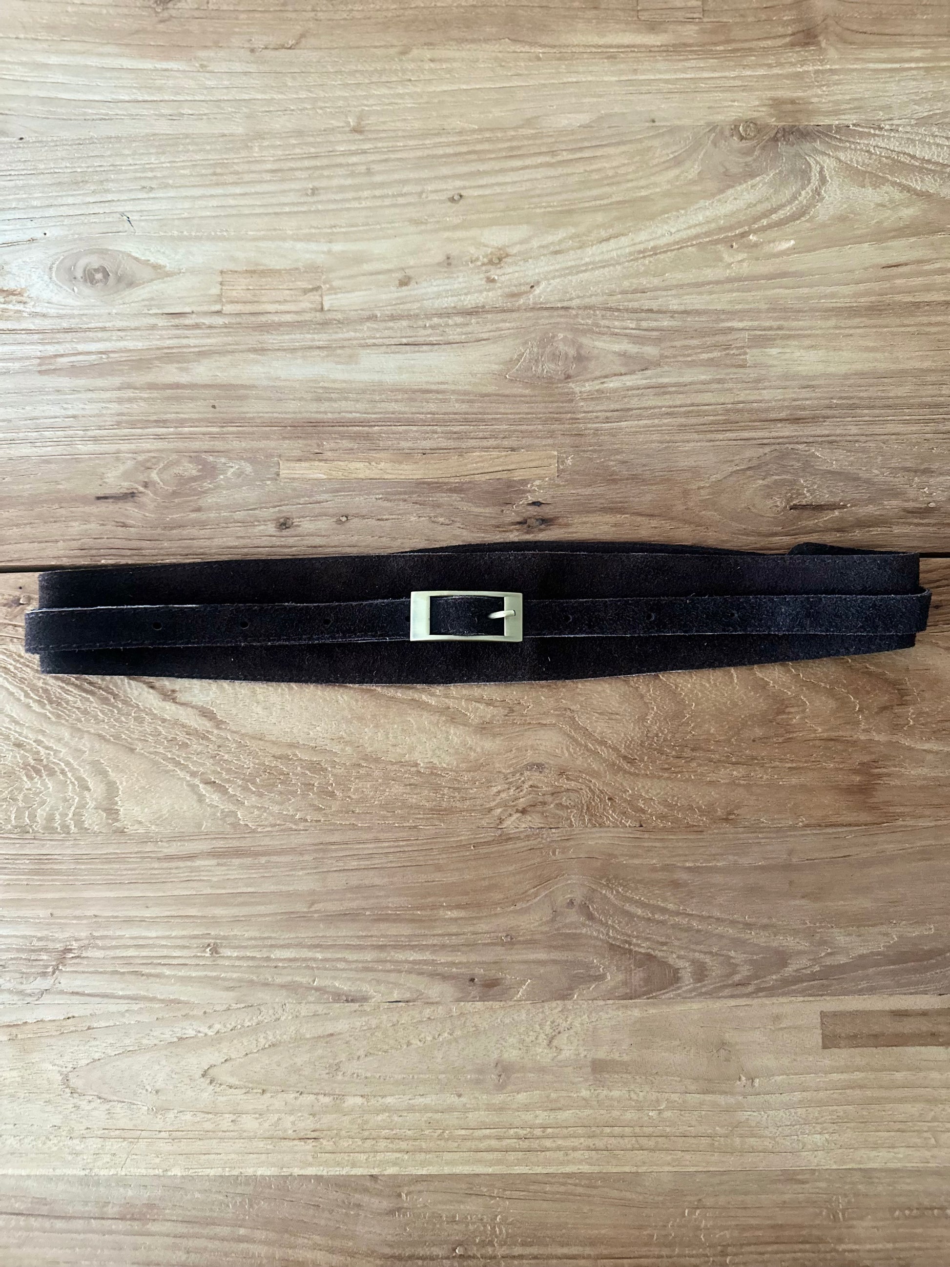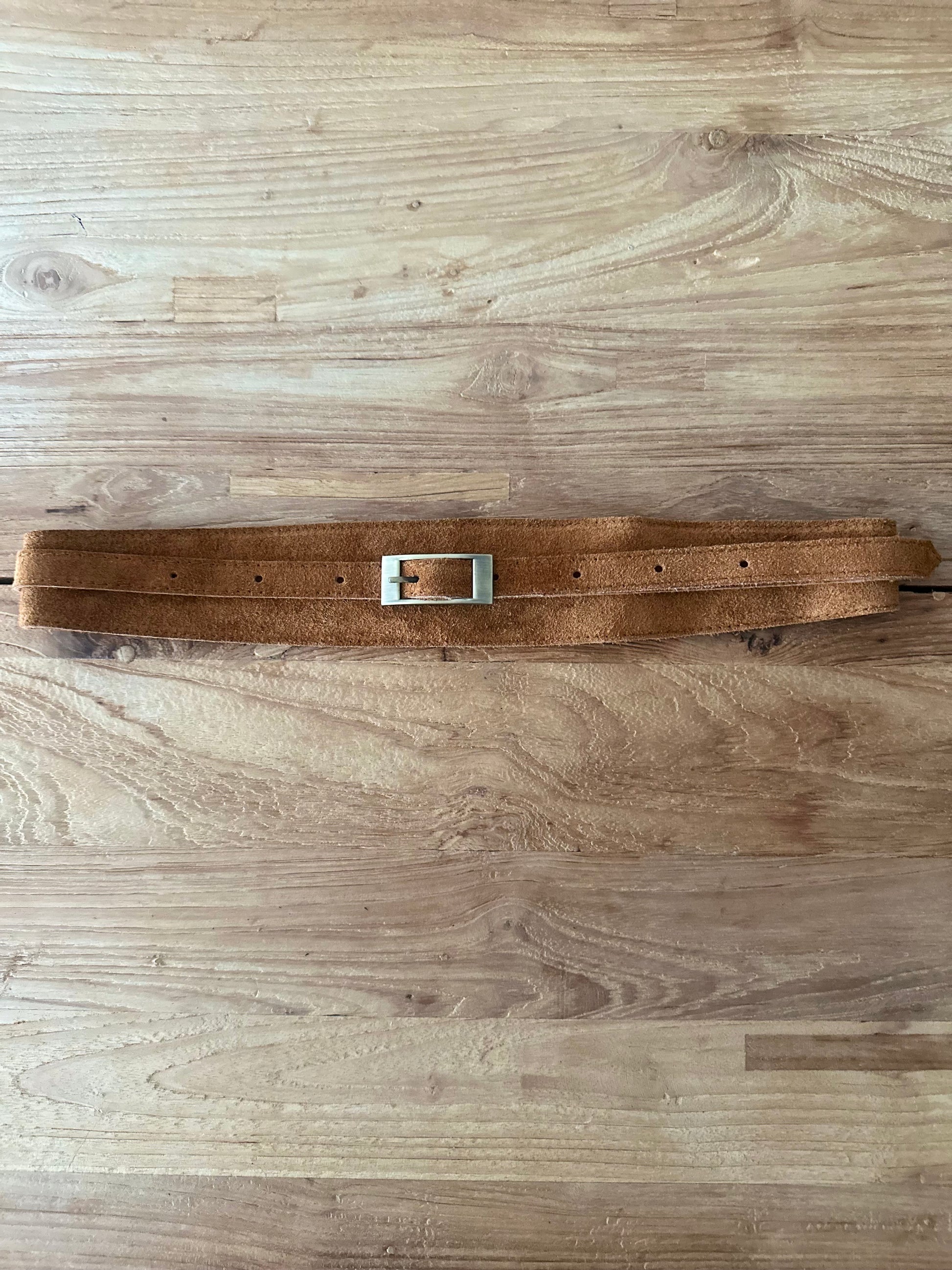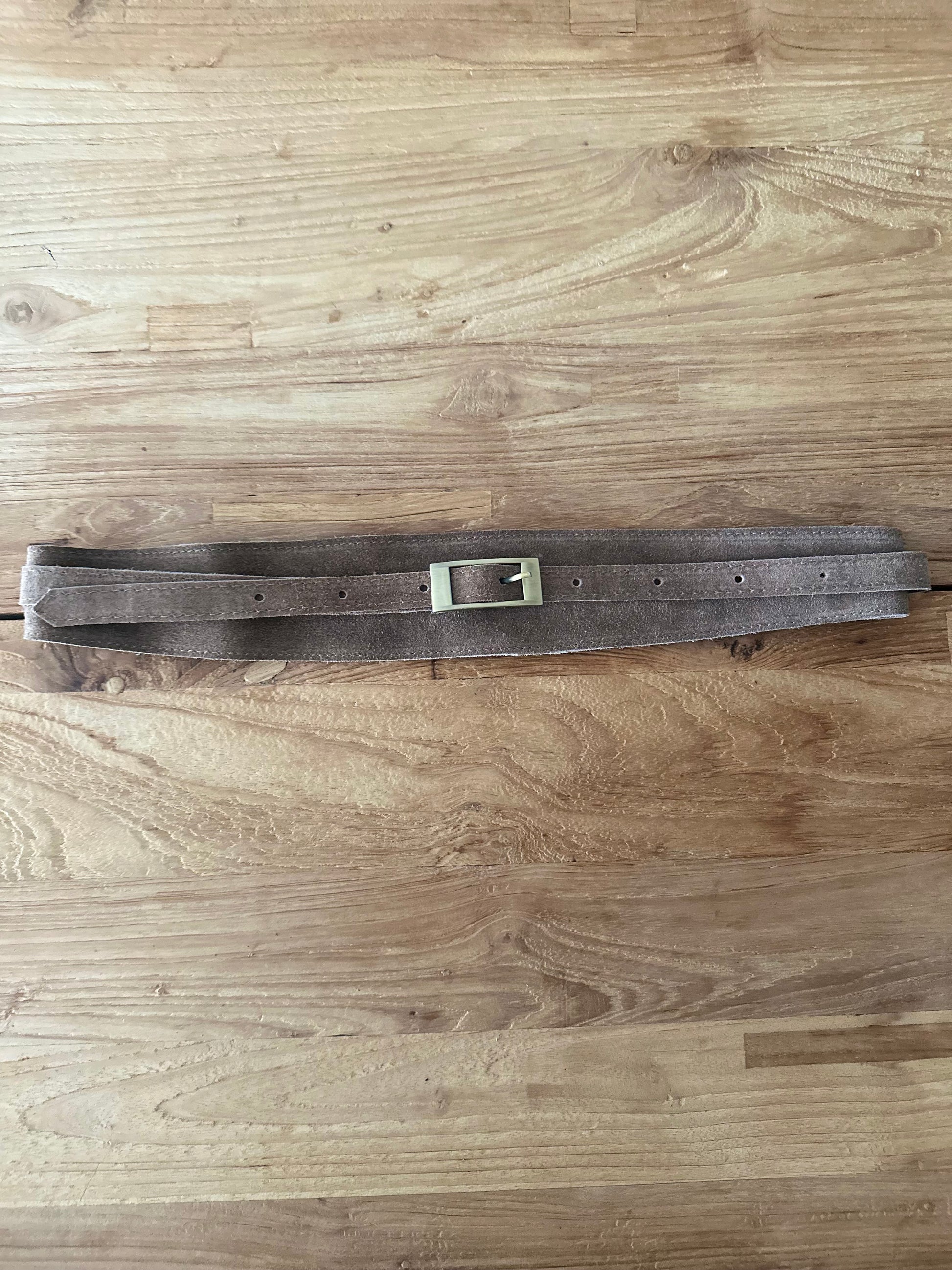 Cinturón de ante con hebilla dorada.