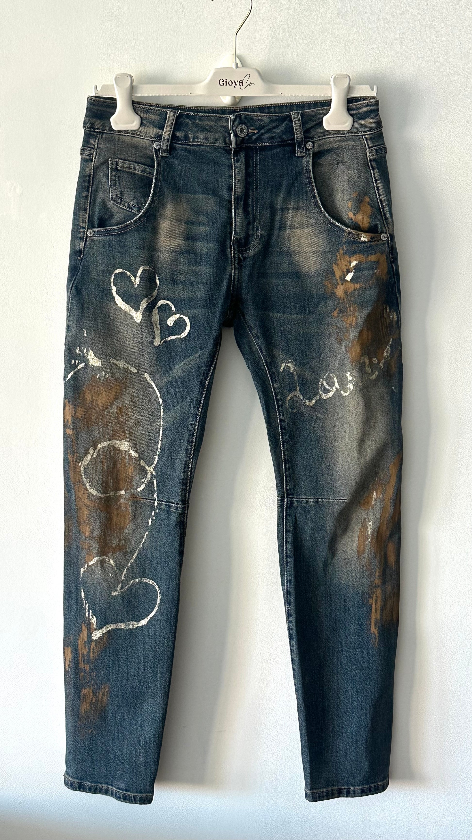 Pantalón vaquero S. Woman pintado con detalles de corazones.